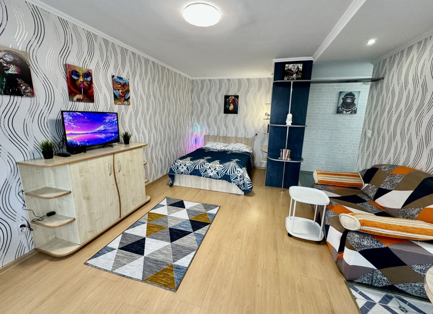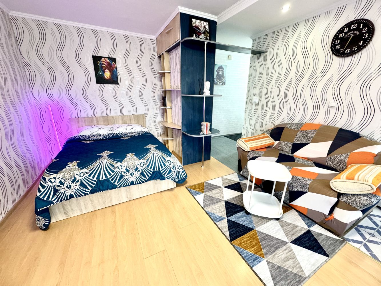 В квартире одна двуспальная кровать, диван не раскладывается.